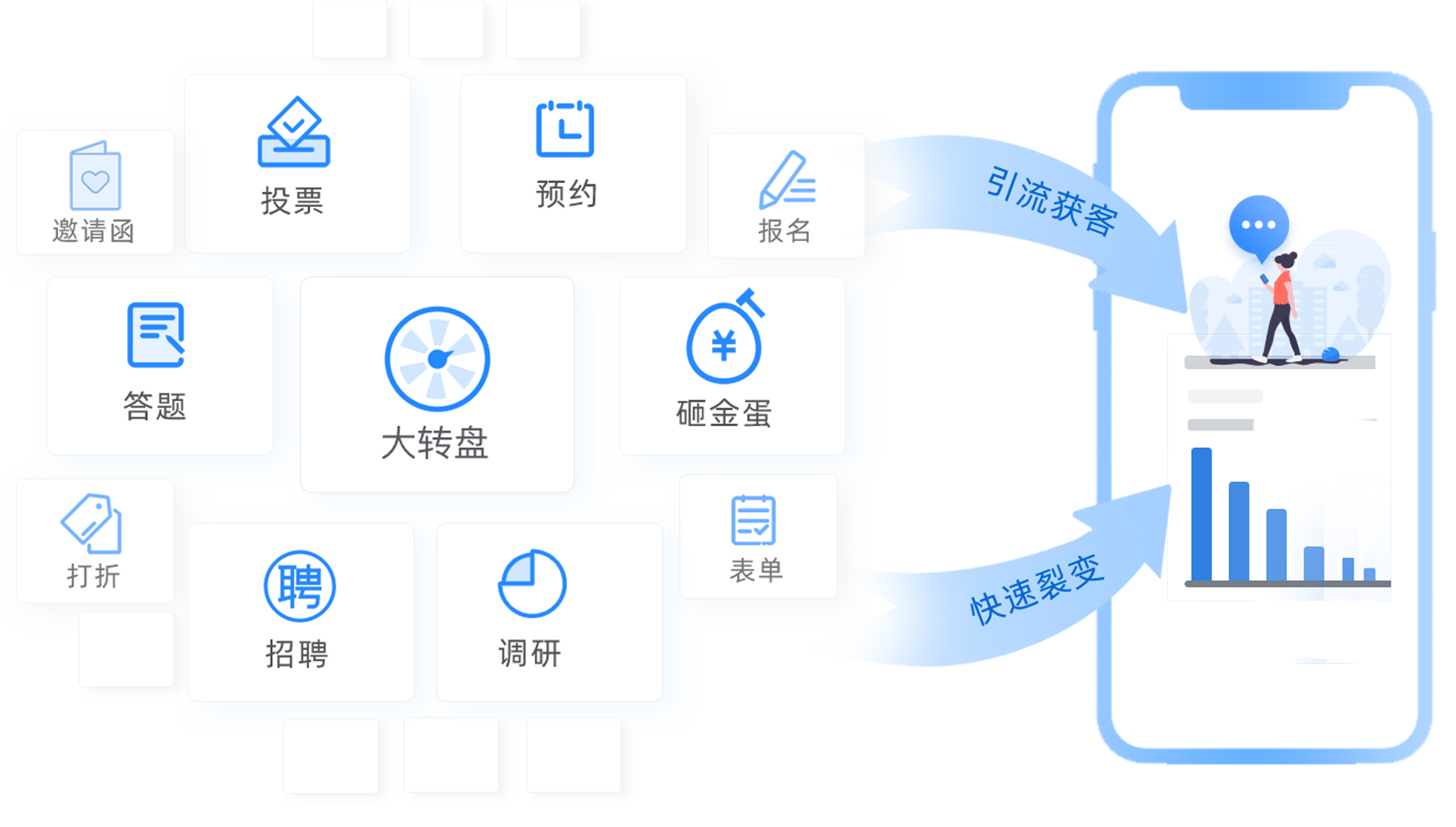 不僅是展示,還可以搜集購買、報名、投票、活動等信息!