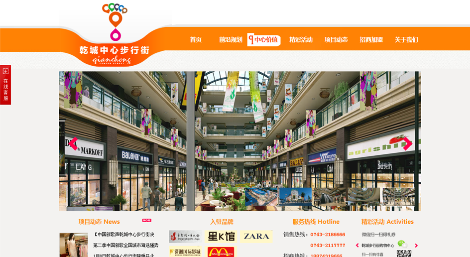 乾城中心步行街中心步行街是吉首集快樂購物、潮流娛樂、特色美食多種元素為一體的一站式步行街。項目涵蓋電影院、KTV、西式餐飲、大型家電賣場、孕嬰童天地、電玩、品牌服飾等,集中步行街“鋪鋪臨街、獨立產權、功能全、品種多、休閑娛樂氛圍濃厚、聚集全城人氣”的優勢,同時結合萬達購物廣場“中心聚合力、高雅購物環境、合理人流導向、一站式購物中心”的特色,以*創新的建筑、*合理動線設置、*全業態、更具體驗感等十大*價值,獨創第7代步行街,成為吉首*繁華的消費聚集地!