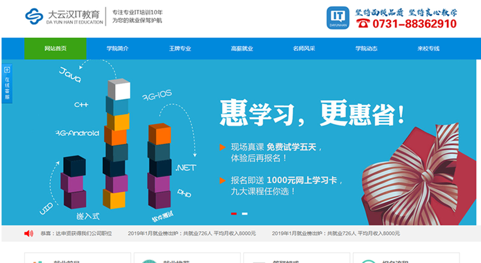 大云漢IT學院直屬于大云漢教育集團,集團下轄教育產品事業部、市場就業事業部、技術研發事業部(新一代技術研發中心)、學術教質部、學生實習實訓部、學生思政部、后勤保障部等多個核心部門,校企合作、*共建在校學生3000余人,是新一代信息技術(軟件開發、大數據、云計算、人工智能等)研發與服務、行業內領先的信息技術產教融合型企業;是一家集實踐教學、社會培訓、企業真實生產和社會技術服務于一體的高水平職業教育實訓基地及人才服務提供基地;是*工業和信息化部授予的全國信息化工程師-NACG數字藝術人才培訓認證中心。前身為湖南計算機培訓中心,成立于2009年,現總部位于湖南長沙黃金創業園,與本科院校、高職院校、中職學校開展校企合作、*共建、學生實習實訓、畢業生頂崗實習等,培養了一大批新一代信息技術人才。現已研發完成Python人工智能教育產品、新一代信息技術前端工程師教育產品、Java軟件開發工程師教育產品,具有完全自主知識產權,先后獲得15項*專利授權和7項軟件著作權登記。