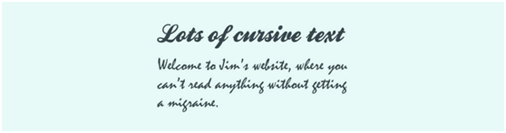 盡管草書文字很有特色,但在網(wǎng)站中大篇幅使用卻會帶來不少弊端。草書文字會破壞網(wǎng)站內(nèi)容的可讀性,加重閱讀負擔,影響了訪客閱讀、瀏覽的舒適度,同時還會暴露出網(wǎng)站的過時與落伍。下圖就是不可取的栗子: