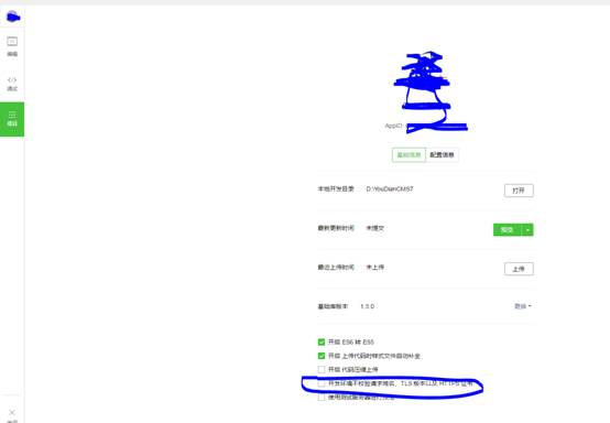 8、在“微信開發(fā)者工具-項目-基礎(chǔ)信息”里,去掉“開發(fā)環(huán)境不校驗請求域名、TSL版本以及HTTPS證書”